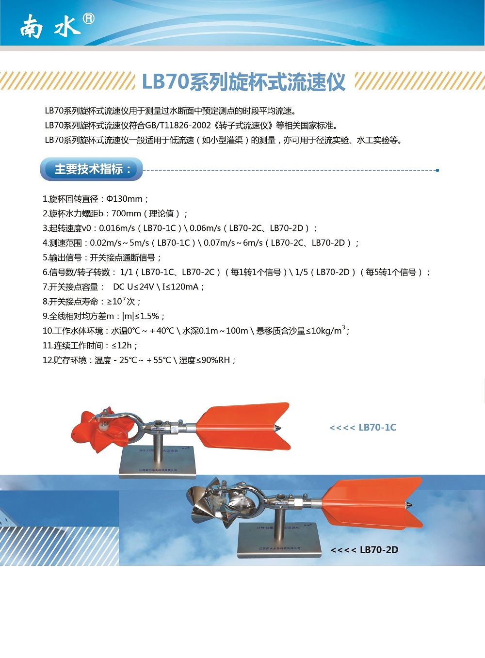 南水LB70-2D旋杯式流速儀